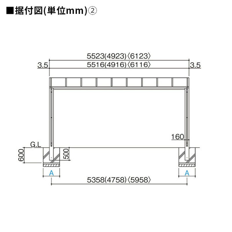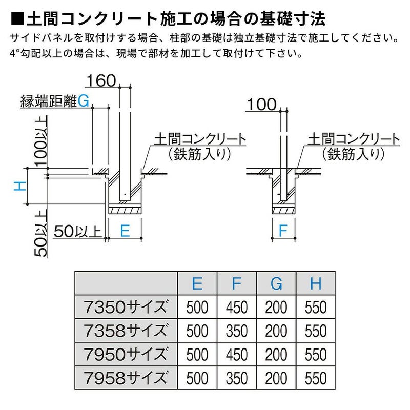 ※サイドパネルを取付けする場合、柱部の基礎は独立基礎寸法で施工してください。