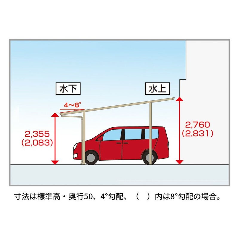※寸法は4°勾配の場合。( )内は8°勾配。(8°勾配の奥行寸法は下部の据付図をご覧ください。)