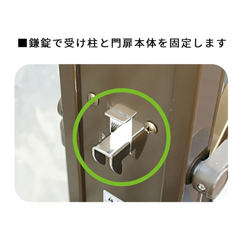 鎌錠が受け柱と門扉本体をしっかりと固定。