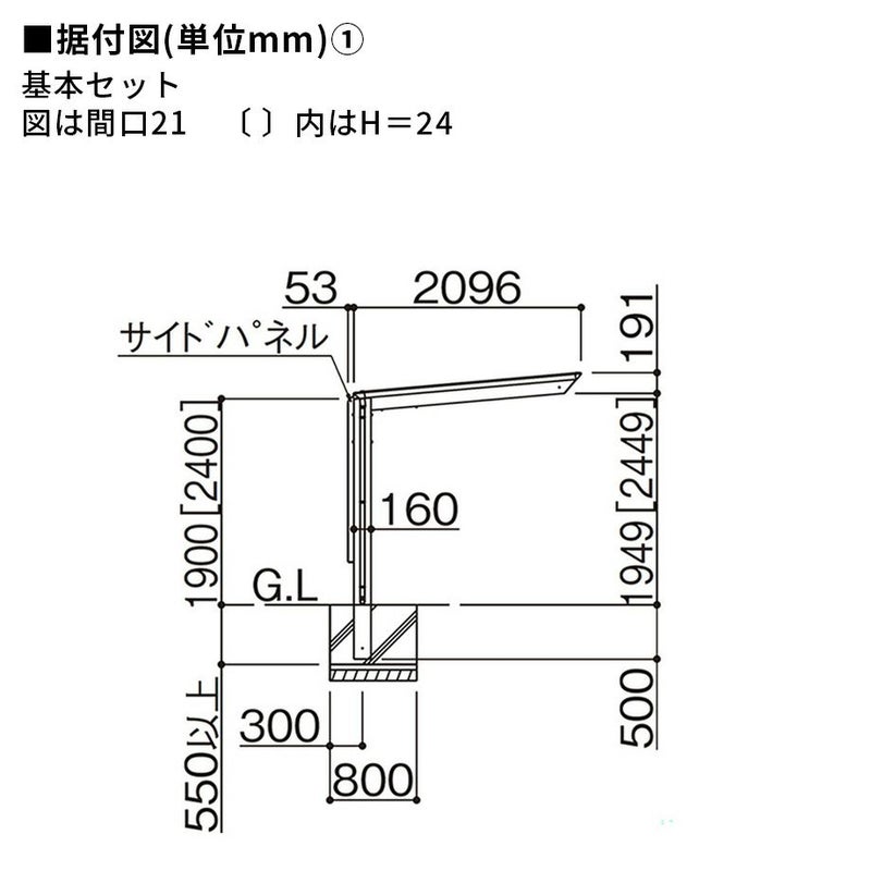 ※サイドパネルを取付けする場合、柱部の基礎は独立基礎寸法で施工してください。