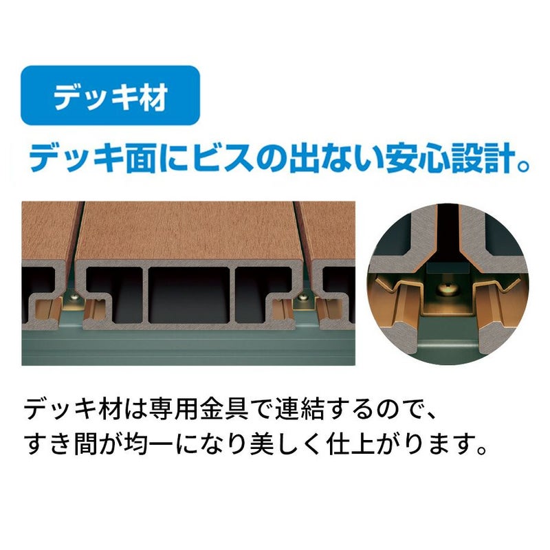 デッキ面にビスの出ない安心設計。