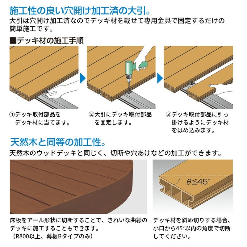 | デッキ芯材 | 木粉55%+PE樹脂45% |