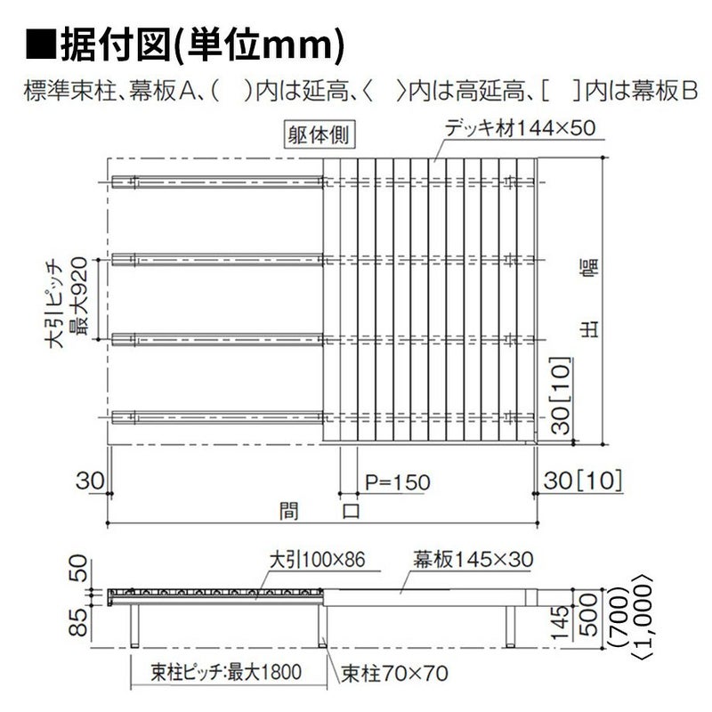 デッキ本体据付図(単位mm)