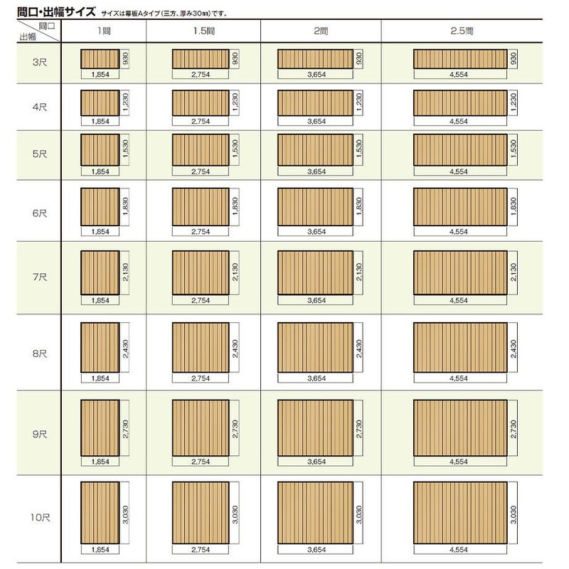 ●セット価格表の出幅サイズは幕板Aタイプを使用した場合です。