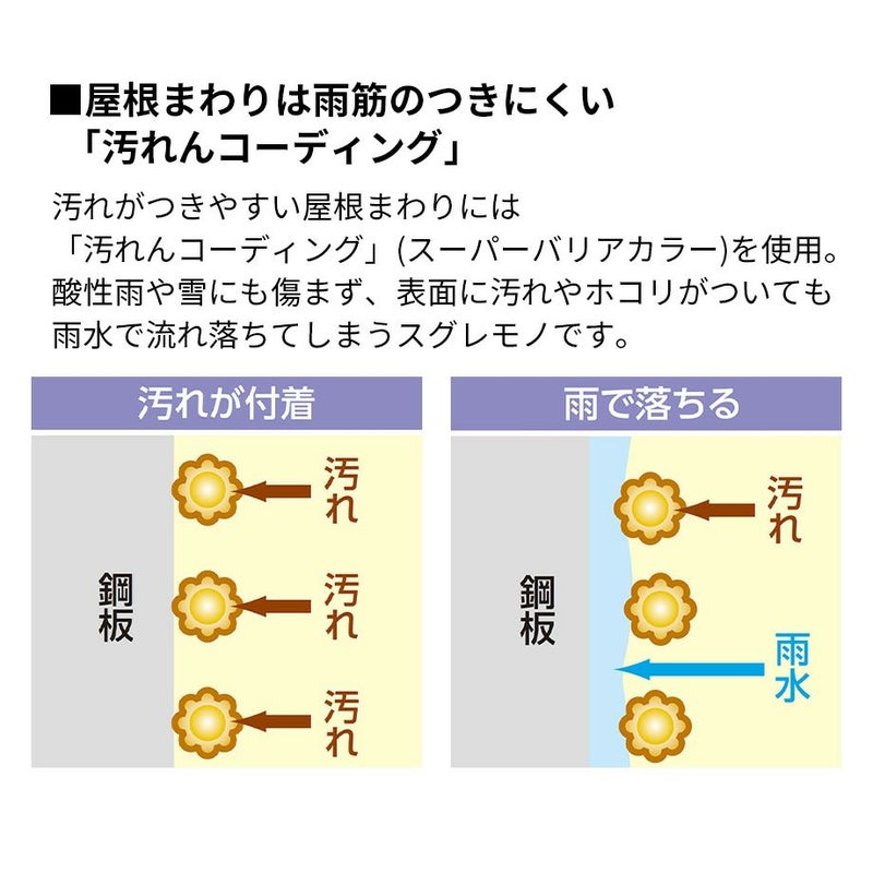 ④屋根まわりは雨筋のつきにくい「汚れんコーディング」